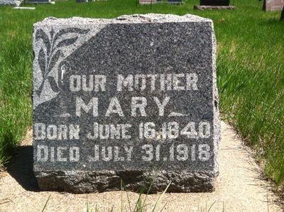 Mary's obituary in the Aug. 8, 1918 edition of the Turtle Lake Times newspaper notes she was 78 when she died, had 43 grandchildren, and was living with her son, Leisz Brother Anton and his family at the time of her passing on July 31, 1918.
