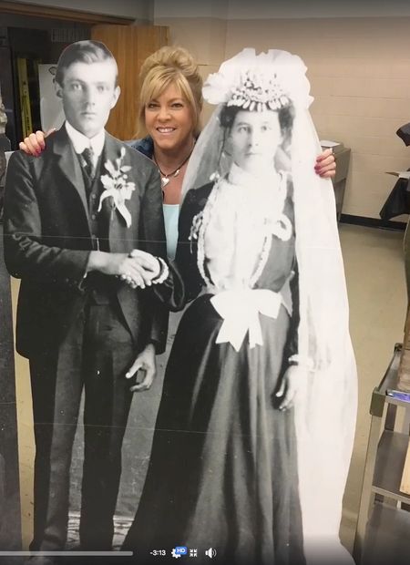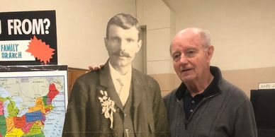 Bob Leisz poses with a life-size cutout of his Grandpa Joseph Leisz (1868-1942). Bob and his wife Josie DROVE 3,980 MILES round trip from their home in Hemet, CA to come to the reunion! Bob was honored at the Saturday night supper party as the eldest grandchild of Leisz Brother Joseph to attend the reunion. Bob is the eldest son of Joseph Francis Leisz (1910-1994), who is the eldest son of Leisz Brother Joseph. Got all that??!