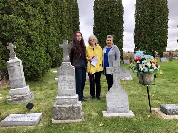 Memorial Service to honor our many Leisz ancestors laid to rest at St. Ann’s Cemetery. Grave markers (color-coded to family branch) on posts to designate each family member and their relationship within our extended family. Here sisters Sandra Reuter and Geri Reuter Colgrove joined cousin Barb Gallagher at St. Ann's Cemetery in 2018. (Note: Your Reunion Planning Committee is attempting to secure a retired Catholic priest to say a special Mass at St. Ann's Church in Turtle Lake, where many of our ancestors were baptized, confirmed, married, and laid to rest. Stay tuned for further info.)