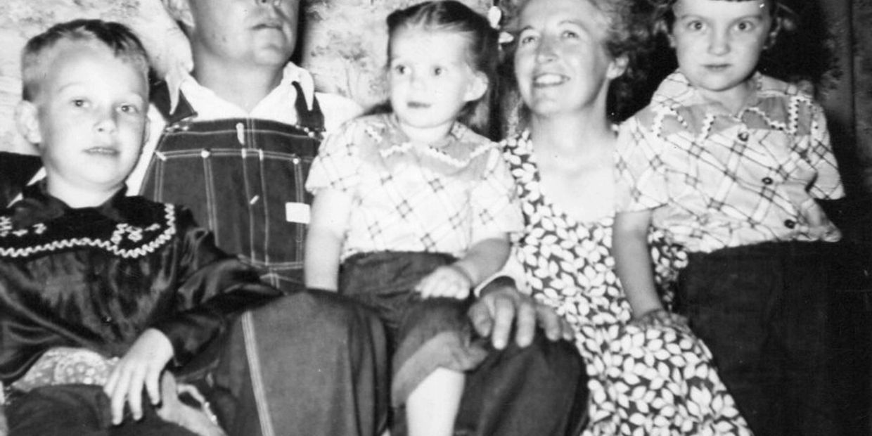 PHOTO ABOVE: Stella Marie's family—her parents Bernard John Minnichsoffer (1918-1988) and Stella Mary Shimota (1912-1996), with her brother Tony (b. 1943) and sister and Emily (b. 1945). Circa 1950.