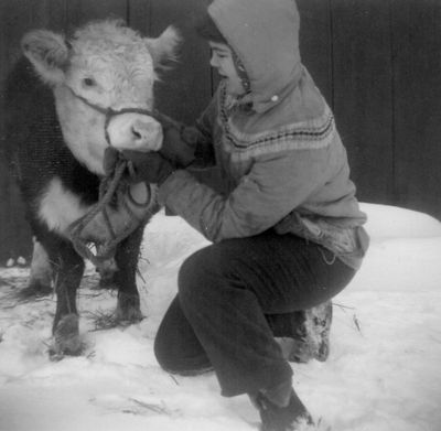 I finally did win a trip to the State Fair with Rosa. She was a twin. Her brother, Rolf, was born with one undeveloped leg. We propped him up on a straw bale to eat and the vet put a cast on his leg. But his leg didn’t improve so we had to ship him. Often with twins the females are sterile. So sadly Rosa also had to go after I showed her. Back to Pollyanna. She had a couple calves. The first was a premie. He was so tiny, no bigger than our dog, Tippy. But the saddest of all was when I was a sophomore in college and got a letter from mom telling me that Pollyanna had a cancerous tumor and had to be shipped. My heart still aches as I think about it.