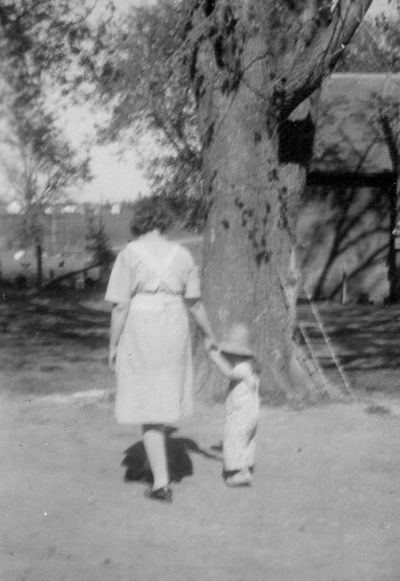 PHOTO AT LEFT: Grandma Theodora "Dora" and the author of these memories, Stella Marie walking to swing, circa 1951. Dora (1894-1981) is Stella's paternal grandmother, the wife of Joseph Frank Minnichsoffer (1889-1968), who was the eldest son of Mary Leisz Minnichsoffer (1862-1903).