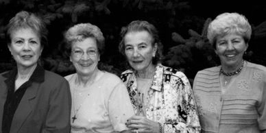 Helen is shown at right with sisters (from left) Marian Leisz Hammang, Gladys Leisz Wick and Millie Leisz O'Malley. Helen and Millie lived much of their lives in California. Each had no children, but were close to sister Marian Leisz Hammang, who was raising seven children out in California as well. Marian, the only surviving child of Leisz Brother Anton, still lives in California and is 90 years old.
