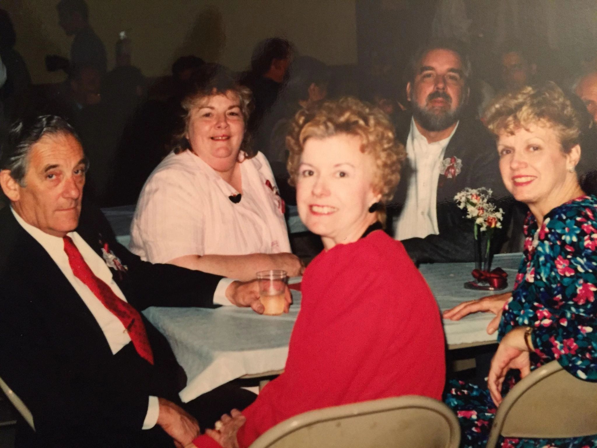 On Dec. 6, 2020, Joan Davis Kleinhenz (red dress) lost her husband of 70 years, Henry Kleinhenz (at left). He was 92. Joan is the eldest granddaughter of Leisz Brother Joseph. Please keep them in your prayers. Joan's sister Mary Lou is at right and their brother Chuck and wife Sandy are in background.